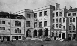 Die erste aschkenasische Synagoge in London wurde 1690, nach der Rückkehr von Juden nach England im selben Jahrhundert, am Duke's Place erbaut, nördlich von Aldgate. Die Gemeinde wuchs, so dass 1722 ein neues Gebäude errichtet wurde, finanziert durch den Geschäftsmann und Philanthropen Moses Hart. Ein erweiterter Bau, entworfen von George Dance dem Älteren, wurde 1766 eingeweiht.