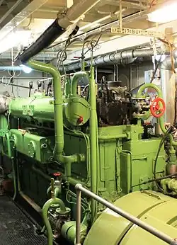 Der Antrieb dieser historischen Hafenfähre erfolgt dieselelektrisch, der Antriebsdieselmotor treibt einen Generator mit 240 kW Nennleistung an (Spannung 400 Volt) und versorgt den elektrischen Fahrmotor mit einer Nennleistung von 221 kW bei einer Spannung von 380 Volt und einer Nenndrehzahl von 1250/min, die über ein Getriebe auf die Propellerdrehzahl von 180/min untersetzt wird. Der Propeller ist linksdrehend und hat einen Durchmesser von 2,5 Metern. Er verleiht dem Schiff eine Geschwindigkeit von 11 Knoten. Die dieselelektrische Antriebsanlage wurde von der AEG-Schiffbau in Hamburg geliefert.