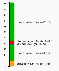 - ↑ Verstappen erhielt nachträglich eine Fünf-Sekunden-Zeitstrafe, da er beim Überholen von Räikkönen die Strecke verlassen und sich somit einen Vorteil verschafft hatte.