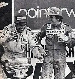 Prost ließ am Ende der 41. Runde an der Box ebenfalls seine Reifen wechseln und fiel dadurch auf den achten Rang zurück. Pironi hatte sich derweil wieder bis auf den dritten Platz zurückgekämpft. Prost gelang wenig später eine noch beeindruckendere Aufholjagd als seinem Landsmann, die ihn bis zur 68. Runde wieder an die Spitze brachte.