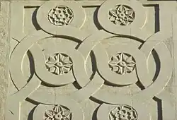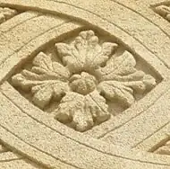 Das Wort „Arabeske“ meint laut Duden[17] islamische Blattverzierungen, die auf die römische Antike zurückgehen. Die Blattverzierungen am Luxemburger alten Rathaus sind unter anderem jedoch Akanthusblätter und Akanthusrosetten, wie sie in der Renaissance Mode waren. Das Akanthus-Blatt kommt in der Alhambra nicht vor. Fachautoren empfehlen deshalb eine andere Wortwahl in Bezug auf die Akanthusranke und verzichten ganz auf den Begriff "Arabeske"[18]. Am Großherzoglichen Palast, bzw. dem alten Rathaus der Stadt, sollte man von „typischen Renaissance-Mustern“ sprechen. Die Flechtmuster am Großherzoglichen Palast erinnern an keltische Flechtmuster, die von den Römern in Mosaik-Fußböden übernommen wurden. Da die Renaissance eine Rückbesinnung auf die klassische Griechische und Römische Antike ist, handelt es sich bei den Flechtmustern am Großherzoglichen Palais um abgewandelte römische Muster. Auch die Römer stellten Blüten in den Mittelpunkt von kreisförmigen Ornamenten und Geflechten.