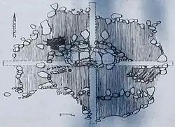 Grab 2 besaß eine Grabkammer vom Typ Großdolmen, die ebenfalls von einem Rollsteinhügel ummantelt war.[5] Zur Orientierung und den Maßen der Anlage liegen keine Angaben vor.