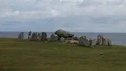 Der etwa 5000 Jahre alte Dolmen aus der Jungsteinzeit wurde Anfang des 19. Jahrhunderts während eines heftigen Unwetters freigelegt. Er ist von einer exakt rechteckigen Steinsetzung (Hünenbett) aus 16 weit auseinander stehenden Steinen mit Höhen zwischen 0,6 und 2,0 m umgeben, die etwa eine Größe von 60 m² erreicht. Die kleine Kammer ist nur 1,65 m lang und 0,5 m breit. Ein Deckstein von 2,7 × 2,0 m bedeckt die nach Osten geöffnete Kammer.