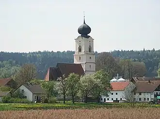 Das kleine, landwirtschaftlich geprägte Dorf an der Wolfach liegt etwa zwei Kilometer westlich von Haarbach. Dominiert wird das Dorfbild von dem alles überragenden Turm der Wallfahrtskirche, die dem Papst Gregor dem Großen geweiht ist.
