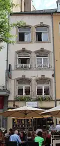 - ↑ Guy May, 2002. Die Straßennamen der Stadt Luxemburg unter deutscher Besatzung (1940-1944). ( des vom 4. März 2016 im Internet Archive) Info: Der Archivlink wurde automatisch eingesetzt und noch nicht geprüft. Bitte prüfe Original- und Archivlink gemäß Anleitung und entferne dann diesen Hinweis. Ons stad 71: 30–32.