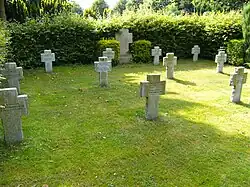 Eine Grablage mit Kriegsgräbern des Zweiten Weltkriegs befindet sich links seitlich hinter der Friedhofskapelle und ist durch eine Hecke separiert.
