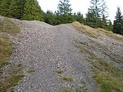 Nördlich der Halden sind Bergbauspuren in Form einer langgezogenen, grabenartigen Pinge erkennbar.