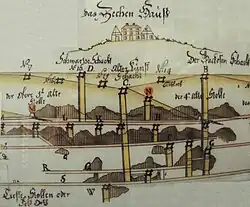 | Schacht | begonnen | Lage | Teufe (Lachter) | Bild |