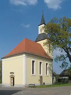 - Kirche Gruna von 1715 mit Epitaphien (seit 2010 Radfahrerkirche) und Kriegerdenkmal