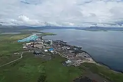 Er liegt am Nordufer des Hvalfjörður östlich des Hvalfjarðargöng. Administrativ gehört er zur Gemeinde Hvalfjarðarsveit. Seit 1979 gibt es hier ein Ferrosiliciumwerk und 1998 ist ein Aluminiumwerk in Betrieb genommen worden. Beide Werke verbrauchen elektrische Energie, die hier sehr günstig ist. Die Rohstoffe werden in einem eigenen Seehafen angeliefert, über den auch die fertigen Produkte das Land wieder verlassen.