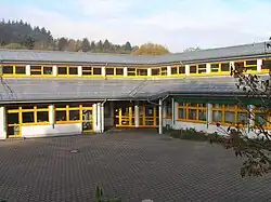 1965 kam noch ein zweistöckiges Gebäude auf der anderen Seite des Schulhofs hinzu, das die Heizung und die Toilettenanlage aufnahm. Es diente gleichzeitig als Feuerwehrhaus.