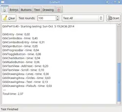 GtkPerf ist ein Benchmark-Programm, mit dem die Geschwindigkeit, mit der eine bestimmte Plattform GTK+-Steuerelemente darstellt, gemessen werden kann.