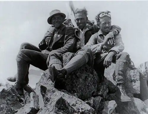 Guido Masetto (li.), Alfred u. Otto Amstad am 16. Aug. 1935 auf dem Gipfel des Salbitschijen nach der Erstbegehung des Südgrats