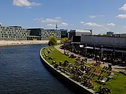 Direkt neben der Gustav-Heinemann-Brücke befinden sich an beiden Spreeufern gern besuchte Flussstrände.
