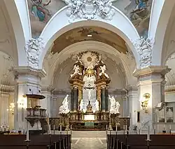 Die prägenden Elemente des Inventars sind vor allem der Altar mit seinen hohen Seitengruppen. Diese entstanden teilweise nach dem Vorbild der Einrichtung der jesuitischen Mutterkirche Il Gesù in Rom. Sie wurden 1725–1731 von Burchardt Precht angefertigt und waren ursprünglich für den Dom zu Uppsala gedacht.