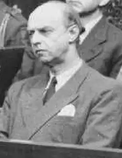- ↑ Sebastian Weitkamp: Braune Diplomaten. Horst Wagner und Eberhard von Thadden als Funktionäre der „Endlösung“ . J.H.W. Dietz. Bonn 2008. ISBN 978-3-8012-4178-0, S. 230; das Urteil ist abgedruckt In: Das Urteil im Wilhelmstraßen-Prozess. Der amtliche Wortlaut der Entscheidung im Fall Nr.11 des Nürnberger Militärtribunals gegen von Weizsäcker und andere, mit abweichender Urteilsbegründung, Berichtigungsbeschlüssen, den grundlegenden Gesetzesbestimmungen, einem Verzeichnis der Gerichtspersonen und Zeugen. Einführungen von Robert M. W. Kempner und Carl Haensel. Alfons Bürger Verlag. Schwäbisch Gmünd 1950, S. 101–104.