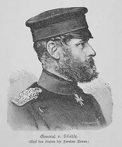 - ↑ General der Infanterie v. Stiehle † (Nachruf). In: Berliner Tageblatt und Handels-Zeitung (Abendausgabe). 16. November 1899, S. 3, abgerufen am 20. Juli 2021.