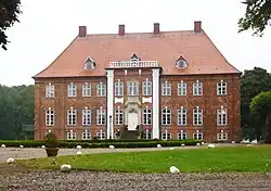 Das Herrenhaus wurde unter dem Eutiner Hofbaumeister Georg Greggenhofer von 1770 bis 1772 errichtet und gilt als einer der letzten großen Bauten aus der Epoche des Barock im Herzogtum Holstein. Der schlossartige, elfachsige Bau verfügt über ein Keller-, ein Haupt- und ein Obergeschoss und ist von einem hohen Walmdach bekrönt. Zur Hof- und zur Gartenseite treten die drei mittleren Fensterachsen als Risalit aus dem Baukörper hervor, der vollständig aus Backstein errichtet wurde. Die Innenräume des Herrenhauses weisen zum Teil noch erhaltene Stuckaturen des Rokoko aus. Der Speisesaal erhielt ornamentale Wandgemälde von Christian Friedrich Joachim Bünsow, die 1956 wieder freigelegt wurden. Zu den bedeutendsten Räumen zählen das an die hofseitige Freitreppe anschließende Vestibül und der dahinter folgende Gartensaal, die wie der darüber liegende Festsaal im Obergeschoss von außen durch den Mittelrisalit betont werden.