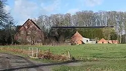 - dem eingeschossigen giebelständigen, außen seit 1903 massiven verklinkerten Wohn- und Wirtschaftsgebäude von 1823 (Inschrift) als Zweiständer-Hallenhaus in Unterrähmgefüge mit reetgedecktem Krüppelwalmdach mit Uhlenloch sowie mit einem Innengerüst noch aus dem späten 16. oder 17. Jh. und einem östlichen Wohngiebel in Fachwerk,