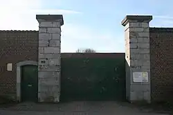 Der dreiflügelige Wirtschaftshof wird zur Straße hin durch eine hohe Backsteinmauer abgeschlossen. Sie gehört zur wenigen Bausubstanz, die noch original aus dem 19. Jahrhundert stammt. Die übrigen Partien der Wirtschaftsgebäude sind modern erneuert.[6] In der Mitte der Mauer befindet sich eine große Toreinfahrt, die von zwei wuchtigen Blausteinpfeilern flankiert wird. Bei diesen handelt es sich um Spolien aus der 1860 geschleiften Festung Jülich.[3] Zwei Hofflügel bestehen aus einer Scheune und einem Unterstellplatz an der Nordostseite sowie einer Scheune und einer Garage an der südwestlichen Seite des Hofgevierts. Die dritte Seite wird von einer weiteren Scheune eingenommen, die zum Teil mit Backstein verkleidet ist.