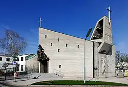 Christus als Guter Hirte, Skulptur von Otokar Čičatka, 1965, Pfarrkirche Zum Guten Hirten, Wien -
