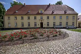 Auf den Fundamenten des Mittelalters ließ der preußische Offizier und Landrat Ernst Friedrich Wilhelm von Bandemer ein Gebäude errichten. Nach seinem Tod übernahm seine Tochter Marie Friederike Caroline Henriette von Bandemer das Gut. Sie starb unverheiratet, hatte aber verfügt, dass das Gut in eine Stiftung für Offizierstöchter, die älter als 40 Jahre waren, überführt werden sollte. Als Vorerbin setzte sie ihre Gesellschafterin, Bertha Schweitzer, ein. Ihr Besitztum führt das Generaladressbuch der Rittergutsbesitzer der Provinz Brandenburg in der Nachweisung der kreistagfähigen Rittergüter mit rund 955 ha auf. Davon waren anteilig etwa 329 ha Waldbesitz. Zum Gut gehörte damals eine Brennerei. Als Pächter agierte Ober-Amtmann Lüdicke.[3] Frau Schweitzer, sie lebte in Diedersdorf und in Berlin, starb 1893 und die Friedericke Amalie von Bandemersche-Offizierstöchter-Stiftung nahm ihre Arbeit auf. 1895 übernahm Carl Viktor Liepmann das Gut und leitete es bis 1911. Unter seiner Führung übernahm die Stadt Berlin im Jahr 1901 das Gut, um die Berliner Rieselfelder zu erweitern. Der Direktor der Berliner Stadtgüter, Heinrich Ruths, lebte von 1919 bis 1933 im Gutshaus. In dieser Zeit wurde die Freitreppe verändert. Ursprünglich standen dort zwei Vollplastiken, die Löwen zeigten.