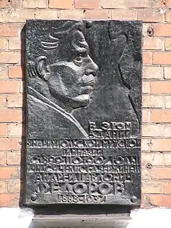 - Andrej P. Fjodorow (1888–1937), Revolutionär; Leiter der Geheimdienstabteilung des NKDW Leningrad, Gedenktafel am Eingang