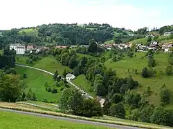 Oberhalb und nördlich von Häg liegt der einwohnerstärkste Ortsteil Ehrsberg.[56] Im Gegensatz zum eng der Straße und dem Hang folgenden Häg breitet sich Ehrsberg mehr in der Ebene aus. Mittelpunkt des Dorfes ist die in den späten 1840er Jahren errichtete Kapelle St. Wendelin/St. Antonius. Von Ehrsberg aus erreicht man in östlicher Richtung den Zinken Waldmatt, wo sich ein Fußball-Hartplatz befindet.