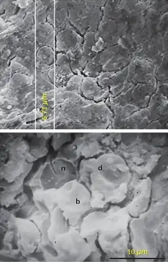 - ↑ Policarp Hortolà: Human bloodstains on bone artefacts: an SEM intra- and inter-sample comparative study using ratite bird tibiotarsus. In: Micron. Band 90, 5. September 2016, S. 108–113, doi:10.1016/j.micron.2016.09.002 (researchgate.net [abgerufen am 25. September 2019]).