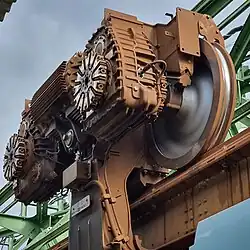 - Schwebebahn Dresden, 1901 eröffnet, mit demselben Tragemechanismus wie die Wuppertaler Schwebebahn, aber aufgrund der starken Steigung der Strecke von einem Seil gezogen