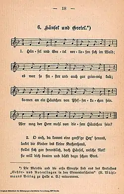 - ↑ Hänsel und Gretel verliefen sich im Wald bei volksliederarchiv.de