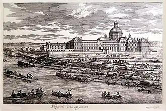 Das Hôpital de la Salpêtrière wurde auf Veranlassung Ludwig XIV. (1638–1715) zusammen mit dem Hôtel des Invalides als Krankenhaus gebaut. Verantwortlich für das Bauprojekt war Louis Le Vau, Libéral Bruant († 1697) wurde mit dem Entwurf der Kapelle betraut.[1] Der Name stammt von einer früheren, unter Ludwig XIII. gegründeten Fabrik auf dem Gelände, in der Munitionspulver, das Salpeter enthielt, hergestellt wurde. Die Salpêtrière war ein gigantischer Moloch mitten in Paris mit bis zu 8.000 Patienten. Im Jahre 1656 als Hospital besonders für Frauen und Geisteskranke[2] eingerichtet, bildete sie das zentrale Element des Hôpital général (Zusammenschluss staatlicher Hospitäler) und galt auch als das „größte Asyl Europas“. Das Hôpital général sollte alle Armen und Bettler aufnehmen und sie somit der Stadt fernhalten. Die Wegsperrung der meisten von ihnen fand aufgrund von richterlichen Anordnungen statt.[1]