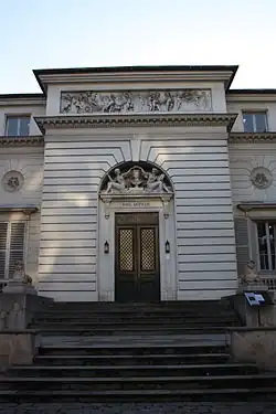 Von dem ursprünglichen Hôtel particulier ist noch der Haupteingang in Form eines Mittelrisalits erhalten. Eine Treppe, die von Sphinxen gerahmt wird, führt zum Portal. Darüber wird in einer halbrunden Nische Apollon von zwei Musen gekrönt. Den Abschluss des Risalits bildet ein Relief, das bacchantische Szenen darstellt.