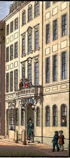 Die neue Schaufront auf dem Grundstück Schloßstraße 7 war neun Fensterachsen breit. Das Gebäude entstand nach Entwürfen von Samuel Locke im Stil des Rokoko.[1]