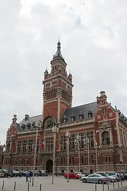 Das Hôtel de ville (Rathaus) von Dünkirchen wurde in seiner heutigen Gestalt von 1897 bis 1901 von Louis Marie Cordonnier im neoflämischen Stil erbaut. Das Rathaus beherbergt heute vor allem den Stadtrat und das Standesamt.