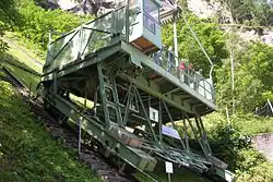 - - Zunächst fährt ein Bus bis zur Talstation des Lärchwandschrägaufzugs (1.209 m), Europas größtem Schrägaufzug.