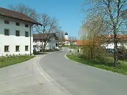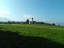 - Vom Kirchhügel aus ist im Bereich der Schulbushaltestelle bei guten Sichtverhältnissen ein weites Inntalpanorama im Blickfeld, das am Horizont auch das Siedlungsgebiet um Rosenheim enthält.