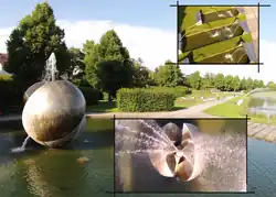 Kugelbrunnen | Der Nachbau eines Originals von 1925 wurde 1950 anlässlich der Deutschen Gartenschau aufgestellt. Auf der Kugel des Sandsteinbrunnens stand ursprünglich ein bronzener Fischreiher. | Fritz von Graevenitz | 48,80569° N, 9,17255° O |