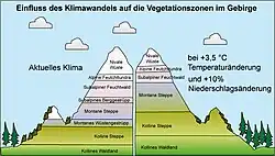 Klimaveränderungen führen zu vertikalen Verschiebungen der Höhenstufen analog zu den Verschiebungen von globalen Klima- und Vegetationszonen. Dies hat Auswirkungen auf die Lebensräume der Tiere. Beispielsweise verkleinert sich der Lebensraum der Schneehasen in den Alpen, wenn sich die von ihnen bewohnten Höhenstufen nach oben verlagern.