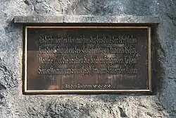 Zur Erinnerung an diese Schutzaktion, die als ein frühes Vorbild praktizierten Natur- und Landschaftsschutzes in Deutschland gelten kann, wurde eine Bronzetafel kurz vor Klusenstein im Fels angebracht, mit den beiden folgenden Distichen im Pathos der Zeit: