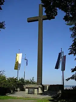 Der Platz am Kreuz ist als Aussichtspunkt mit weitem Blick ins Eichsfeld gestaltet. Im Rahmen der Deutschen Wiedervereinigung wurde im März 1990 eine Gedenktafel am Kreuz eingeweiht, die an die „Opfer der faschistischen und stalinistischen Diktatur“ erinnert.[21]