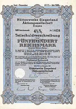 Im Zuge einer Neuorganisation der Vereinigten Stahlwerke wurden 1933 juristisch selbständig agierende Betriebsgesellschaften gegründet. In diesem Zusammenhang entstand die Hüttenwerke Siegerland AG. Dazu gehörten die Charlottenhütte, das Hochofen- und Weißblechwerk in Wissen, das Eichener Walzwerk, das Werk Hüsten, das Werk Nachrodt, das Meggener Walzwerk, das Werk Attendorn, das Werk Weidenau und eine Verzinkerei in Aschaffenburg.