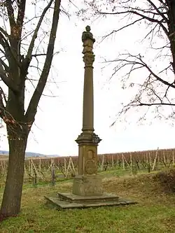 - Statue des hl. Johannes von Nepomuk, errichtet 1706 an der Stelle, bis zu der im selben Jahre das große Hochwasser reichte. An der Skulptur befindet sich das Wappen eines geflügelten Leu mit Schwert.