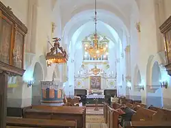 - Die evangelische Kirche[6] und deren Glockenturm im 13. Jahrhundert errichtet und im 15. erneuert, stehen nach Angaben des Verzeichnisses historischer Denkmäler des Ministeriums für Kultur und nationales Erbe (Ministerul Culturii și Patrimoniului Național) unter Denkmalschutz.[7] Das Portal und eine Nische der Kirche im romanischen Stil deuten ins Mittelalter.[3]
