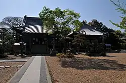 Man betritt den Tempel von Osten her durch das Tempeltor (山門, Sammon; 1), das hier als Turmtor ausgeführt ist und unten rechts und links je einen Tempelwächter zeigt. Es wird daher auch als Niō-Tor (仁王門) bezeichnet. Voraus sieht man die Haupthalle (本堂, Hondō; 2), rechts daneben die Daishidō (大師堂; 3), die Halle, die dem Tempelgründer gewidmet ist.
