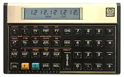 Der HP-12C ist ein weit verbreiteter, programmierbarer finanzmathematischer Taschenrechner. Mit ihm lassen sich neben umfangreichen Grundfunktionen diverse gängige Berechnungen – auch iterativer Art – der Finanzmathematik durchführen: Interner Zinsfuß, Annuitäten, Barwert und Endwert, sowie Amortisationsrechnungen. Im Jahr 2003 kam zusätzlich der HP-12C Platinum auf den Markt, der einige zusätzliche Funktionen und ein überarbeitetes Design (platinfarben) aufweist.[3] Der 12C wird – als einziges Modell der hier beschriebenen Rechnerserie – seit 44 Jahren äußerlich und funktional unverändert produziert, was für ein Gerät der Informationstechnik, speziell für einen Taschenrechner, einzigartig sein dürfte.