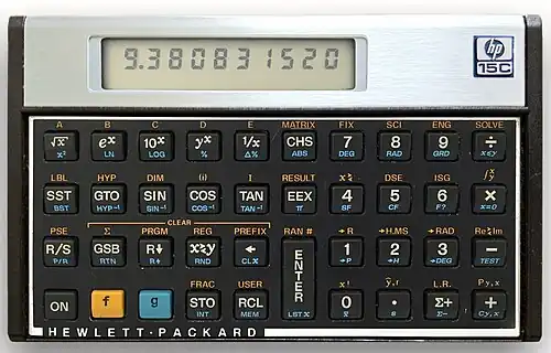 Der HP-15C galt als High-End-Taschenrechner, zusätzlich zum HP-11C bietet er Nullstellenbestimmung, numerische Integration, Rechnen mit komplexen Zahlen und umfangreiche Matrizenfunktionen. Er war der Nachfolger des erfolgreichen HP-34C und erweiterte dessen Funktionsumfang nochmals erheblich.