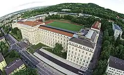 Im Jahr 1901 wurde mit dem Bau des Hauptgebäudes und der weiteren 25 Einzelgebäuden nach den Plänen des Militär-Oberingenieurs Paul Acham begonnen, welcher 1904 beendet wurde, und am 4. November 1904 von Kaiser Franz Joseph eröffnet wurde.[3] Bis zu 370 Schüler konnten zu diesem Zeitpunkt in der Akademie leben und unterrichtet werden. Zudem existierte eine beinahe autarke Infrastruktur, so gab es zum Beispiel neben den für den militärischen Betrieb notwendigen Einrichtungen wie Ställen und Exerzierplätzen auch eine eigene Gärtnerei, eine Fleischerei, einen Kranken- und Isolierpavillon, mehrere Bibliotheken, ein Schwimmbad, ein Friseurzimmer usw.