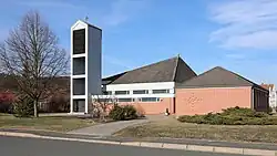 Nach dem Kauf des Kirchengrundstückes im Jahr 1971 und der Einweihung des neuen Friedhofs 1973 folgte am 18. Juni 1978 die Konsekration der neuen Kirche St. Johannes der Täufer, einer Filialkirche der katholischen Pfarrei Neukenroth, durch den Bamberger Weihbischof Martin Wiesend.[25] Ein Gemeinschaftsraum wurde 1995 an die Kirche angebaut.