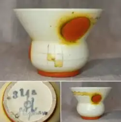 Haël-Werkstätten in Marwitz. Mini-Vase, 5,5 cm. Modell 314, Dekor: "Stephan". Design: Margarete Heymann-Loebenstein